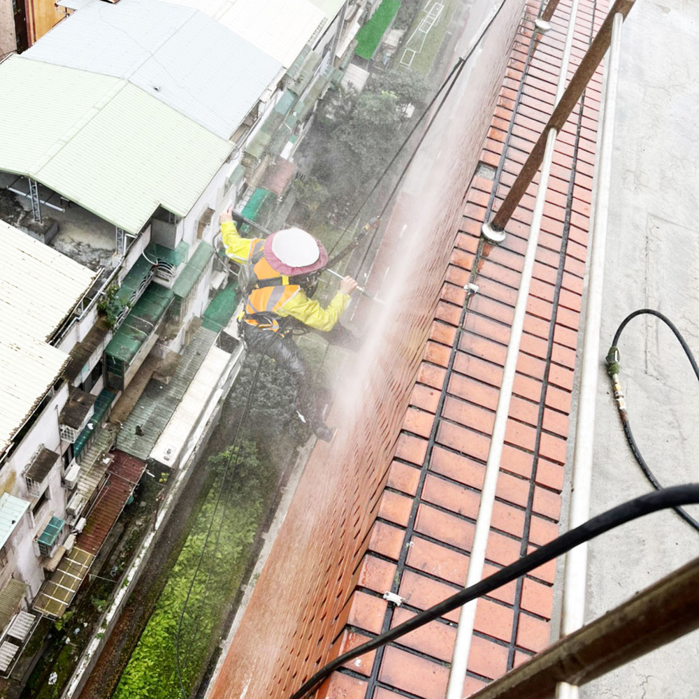 誠勤大樓位於學校核心區域,屋頂長期受風吹雨打影響,導致滲水問題,甚至影響樓內辦公與教學環境。築城國際進行全面防水工程,先清除舊防水層,修補結構裂縫,再施作高彈性PU防水塗料,最後搭配液態橡膠噴塗技術,強化防水效果,確保長久耐用。完工後,大樓屋頂防水性能大幅提升,為學校提供穩定、安全的學習與辦公空間。