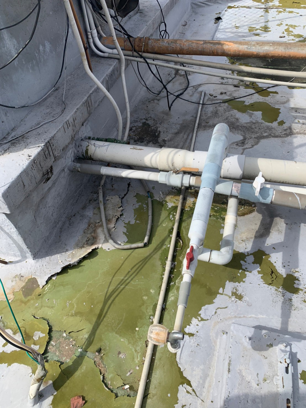 PU防水+液態橡膠,修復裂縫,提升校園大樓屋頂耐候性